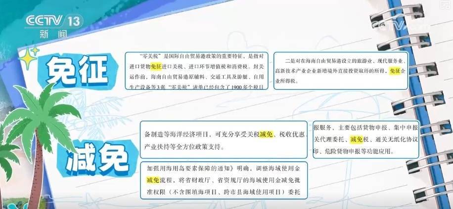 第二类动词是“免”:免征、减免”等,几乎都指向同一件事——帮企业降成本。在海南,对进口原料加工增值达到或超过30%的货物,进入内地时即可免征进口关税。特别的是,这项政策不是只算一家企业的账,在岛内由多家企业分工加工,累加计算增值达到30%,产品进入内地即可免征关税。